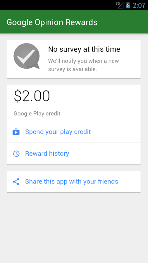 هدا التطبيق هو من تطوير شركة قوقل وهو تطبيق يقوم باعطائك كل اسبوع من 20-30 سبر اراء وجيب عليك اكمالها اما السعر فهو يختلف ويصل الى 3 سنتات لسبر الراي الواحد